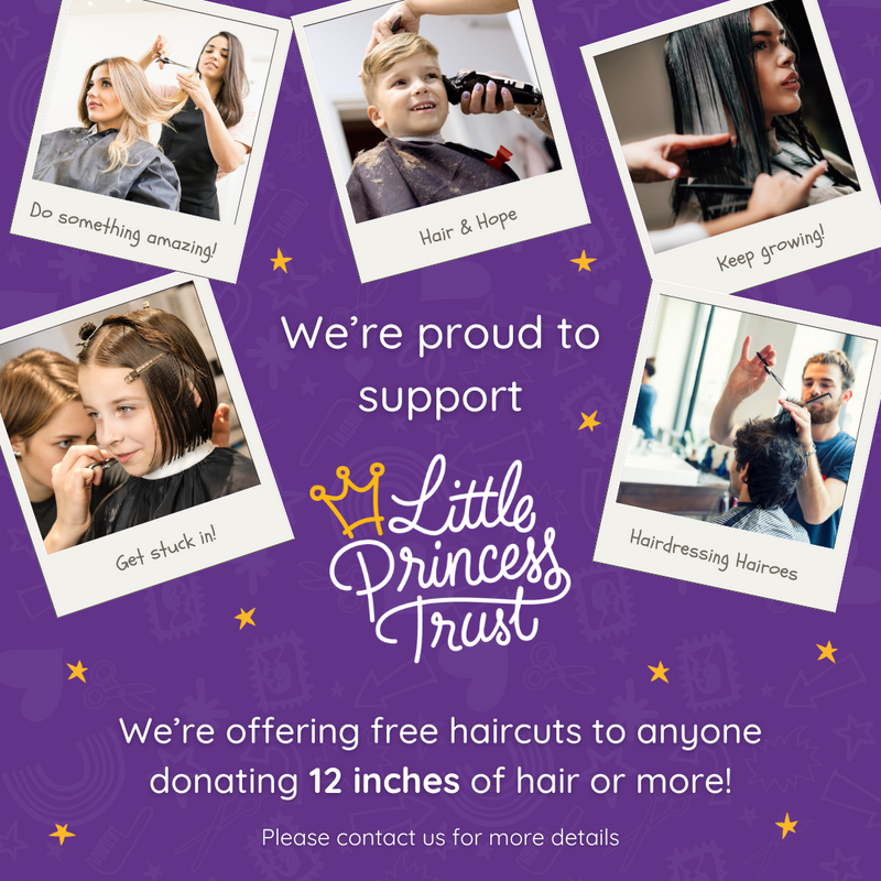 Through our partnership with The Little Princess Trust, we are able to offer a hair donation haircut and restyle for anyone who has signed up to make a hair donation.