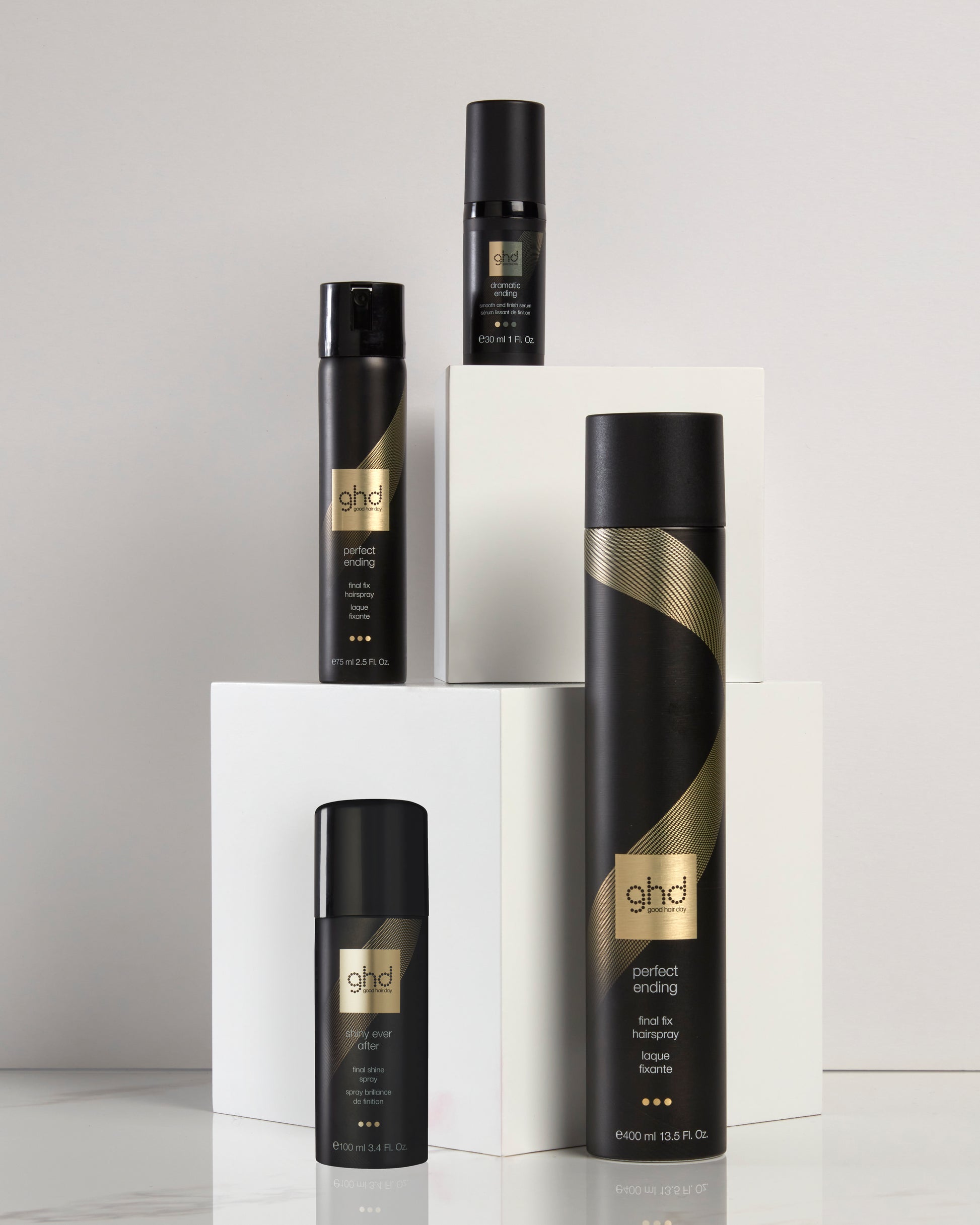 Finish curls, waves or sleek styles with ghd perfect ending - final fix hairspray for long-lasting hold.