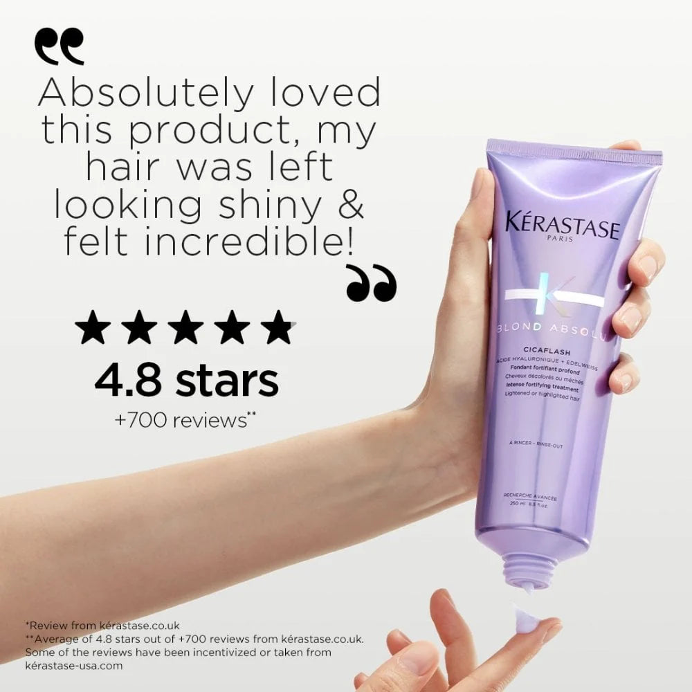 The opalescent lavender milky gel makes it an ideal conditioner for all blonde hair types. And Kérastase Cicaflash Conditioner is formulated to work in harmony with both Blond Absolu Bain Lumière and Bain Ultra-Violet shampoos.
