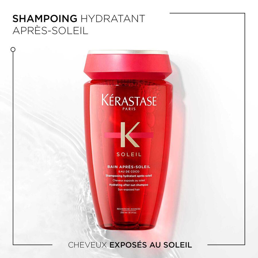 After-sun shampoo enriched with coconut water gently removes chlorine, salt and sand residues, helping to cleanse hair from their drying effects. On wet hair, the translucent gel lathers to purify the scalp and lengths for a hydrating effect. Hair is hydrated through the lengths for instantly refreshed, luminous and smooth locks. The sensual fragrance of jasmine combined with solar tuberose notes create an addictive silage for summer time.
