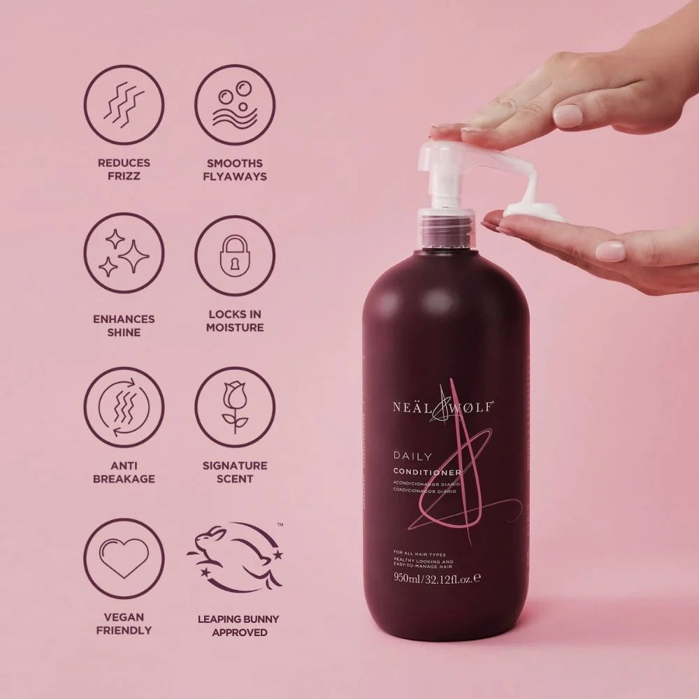 Neal & Wolf DAILY Conditioner is a weightless conditioner that instantly detangles, leaving hair wonderfully smooth and ready for styling.