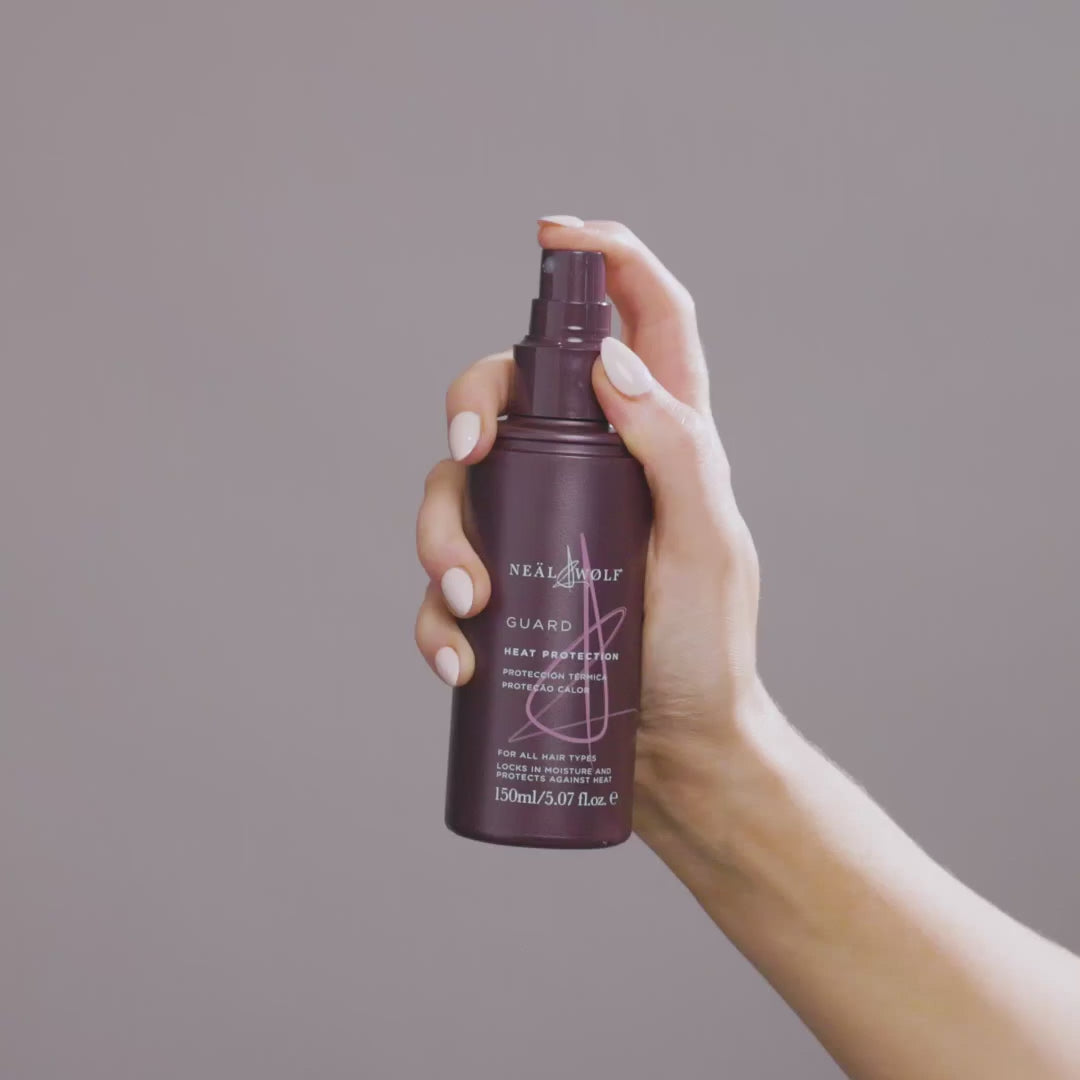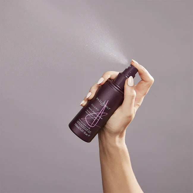 Neäl & Wølf GUARD Heat Protection Spray contains Wheat Protein which helps to lock in moisture, protecting against heat up to 220°C (428°F). A film-forming polymer guards cuticles from moisture loss during styling, keeping them soft and smooth. Meadowfoam seed oil gives hair a glossy and vibrant finish. Guard Heat Protection Spray is suitable for all hair types.