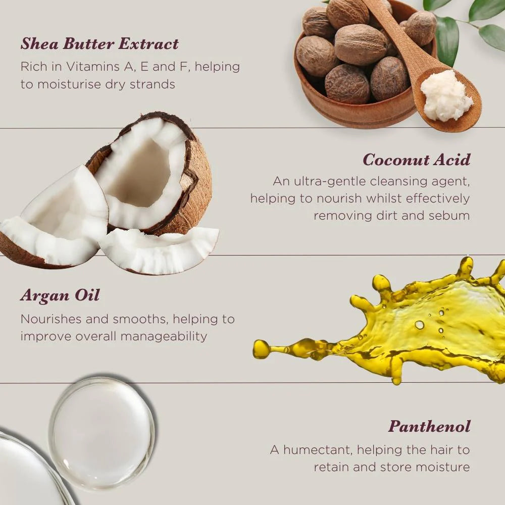 HYDRATE Moisture Shampoo 950ml is the perfect solution for dry hair. This gentle cleanser contains a powerful blend of moisturising ingredients including Betaine, Argan Oil, Panthenol, and Shea Butter, delivering intense moisture and nourishment, leaving hair looking and feeling healthier. This vegan-friendly formula helps reduce frizz and static, leaving hair shiny, smoother and more manageable.