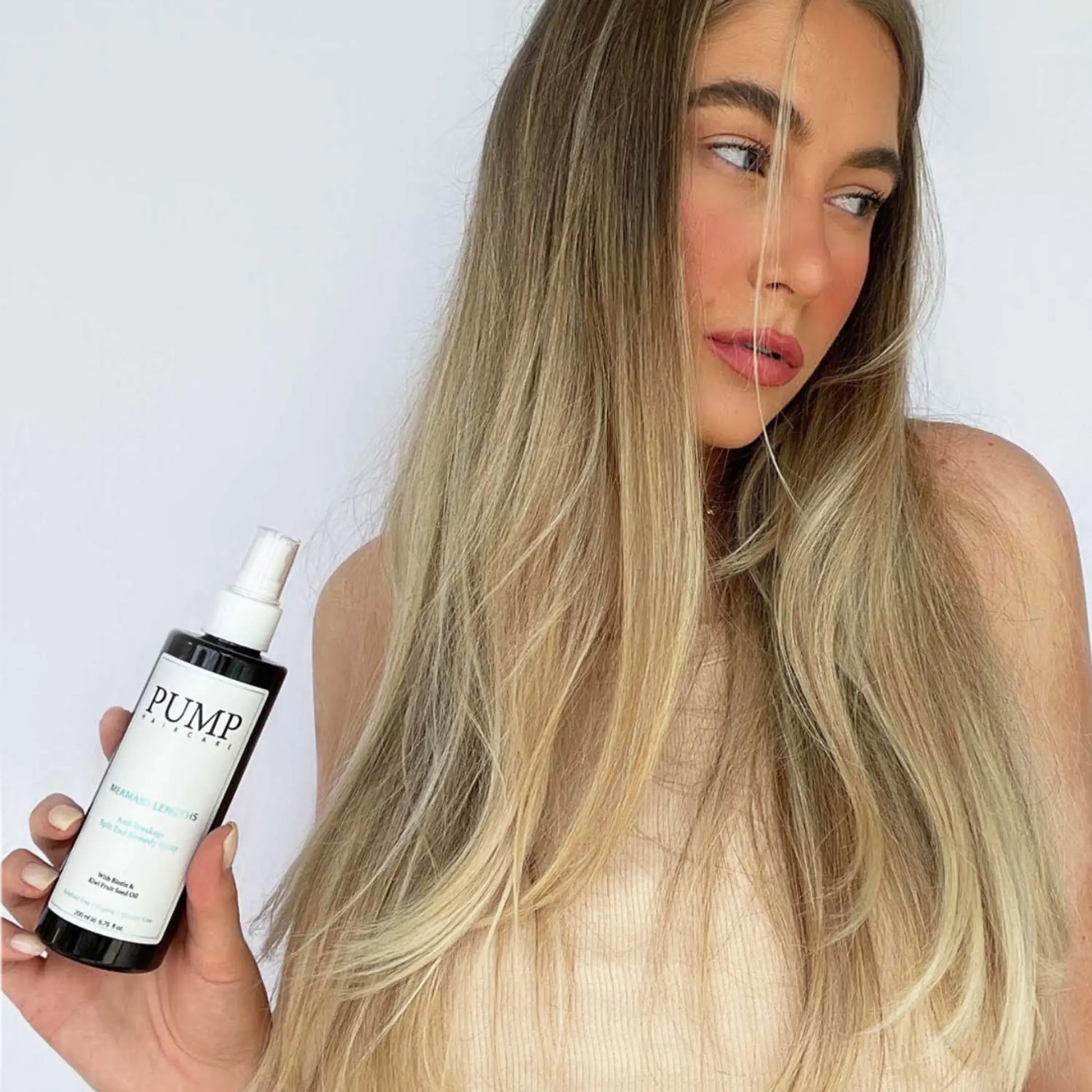 Pump Mermaid Lengths Anti Breakage + Split End Remedy Spray is packed with biotin, Co2 Kiwi Seed Extract and other powerful ingredients to reduce hair fall from breakage by strengthening the ends.