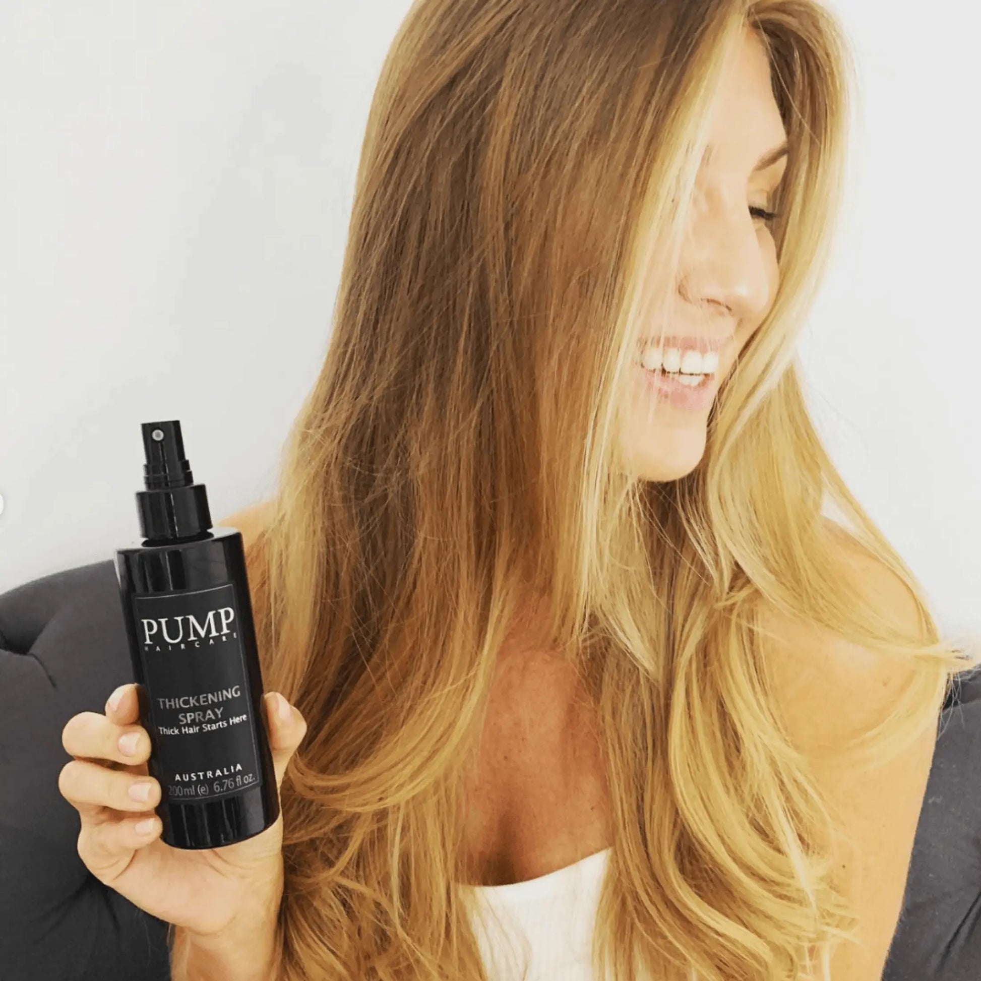 Finding the right product for increasing volume and shine can be tricky, that is why we have formulated pumps hair thickening spray to give your locks the bounce and volume you desire. Packed with hydrolyzed quinoa, rice proteins and nettle extract, Pump’s hair thickening spray is the perfect ally to achieving your desired look.