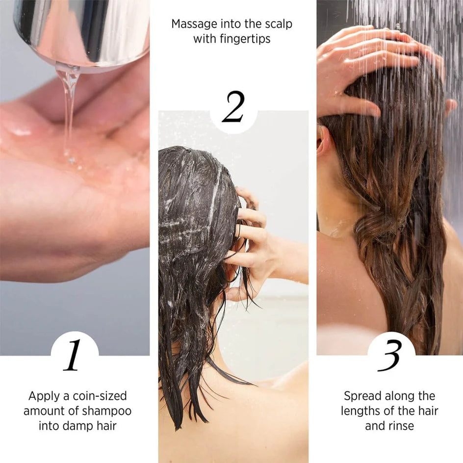 Apply 1 pump of shampoo to wet hair, work into a lather and massage.