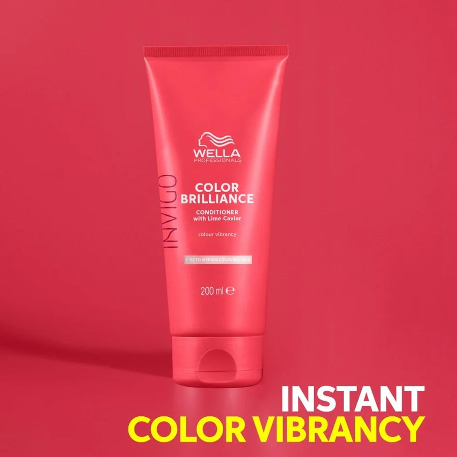Wella Professionals Invigo Colour Brilliance Vibrant Colour Conditioner Fine/Normal (200ml) improves the hair surface and enhances colour vibrancy in fine to normal, coloured hair. With its Antioxidant Shield Technology, it provides instant shine and long-lasting colour protection whilst key ingredient, Lime Caviar, adds a potent mixture of antioxidants and vitamins.